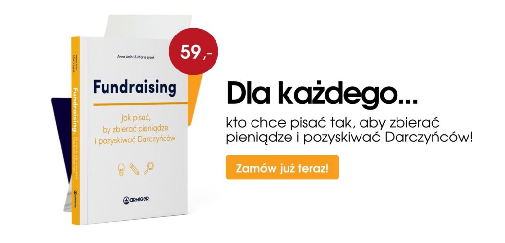 O tym, jak dokładnie go używać, kiedy to robić i na co zwracać uwagę, dowiesz się z książki Ani Anioł i Marty Łysek “Fundraising. Jak pisać, by zbierać pieniądze i pozyskiwać Darczyńców?”. To pozycja, dzięki której: